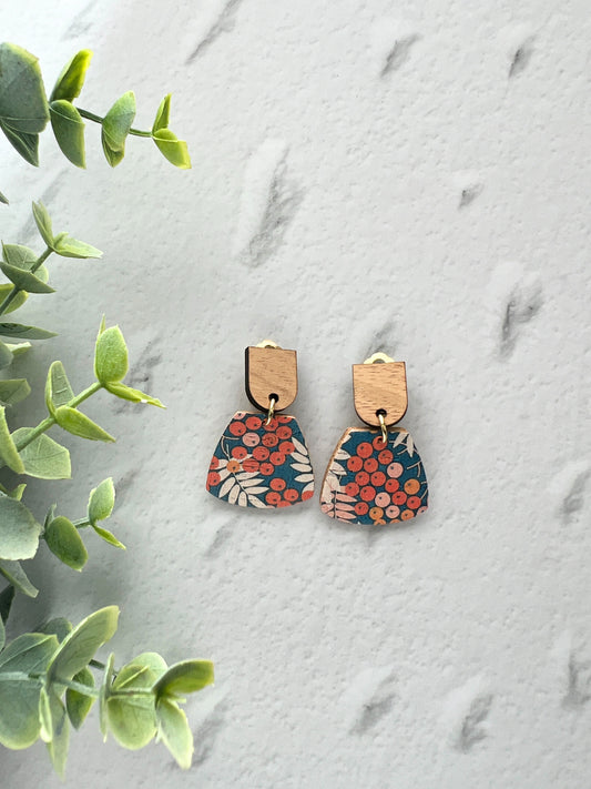 Sacha - Large Triple Feather Dangle Earring - Dark Teal